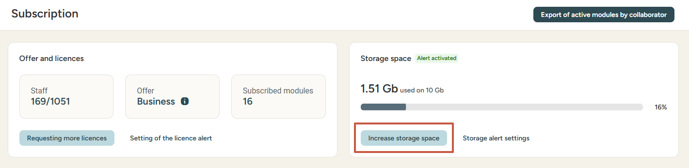 📢 To request additional storage space, click on Increase storage space: