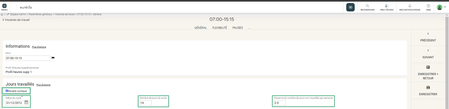 It’s possible to define a recurring work schedule, and the cycle duration can be tailored to your needs.