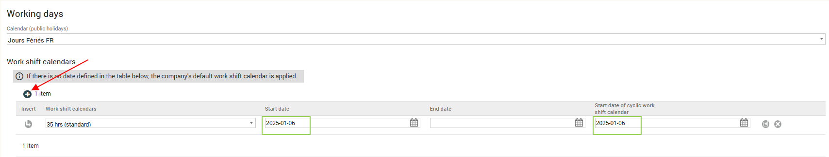 - In the Jobs tab > Working days box, I add a new work schedule by clicking on '