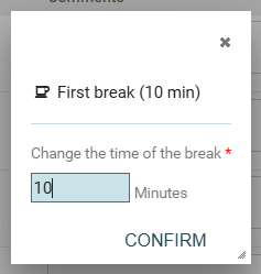 If your timesheets are not pre-filled, you will need to enter the duration of the breaks by simply clicking on the coffee cup!