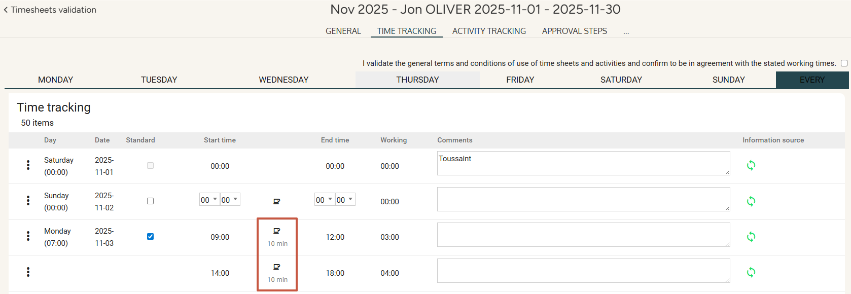 - Breaks are considered as not worked : they are therefore not included in the total hours worked on your timesheet.