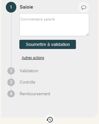 Une fois la note de frais soumise à validation, il ne sera plus possible de modifier les dépenses. |
