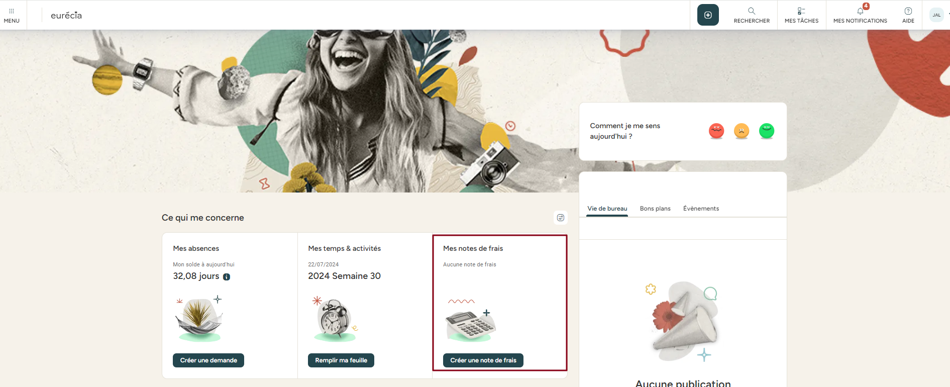 Vous pouvez créer une nouvelle note de frais depuis deux endroits :