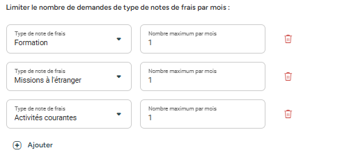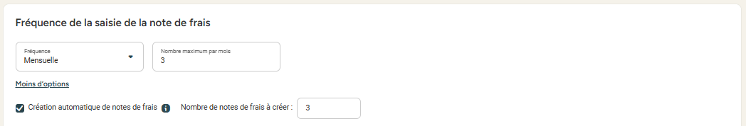 - Je saisis le 'Nombre maximum par mois ou par semaine' pour éviter que les salariés créent de nombreuses notes plutôt que de regrouper leurs dépenses dans une ou deux notes.