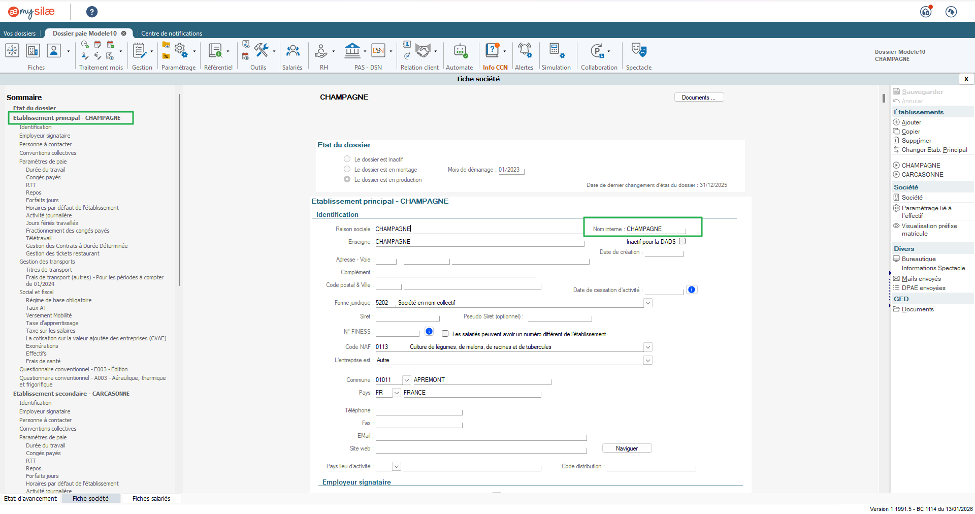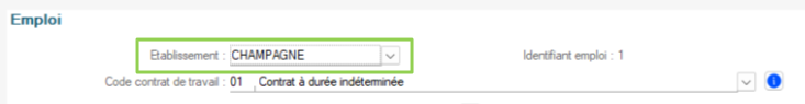 Lors de la synchronisation de mes salariés, l'établissement "Champagne" sera sélectionné dans la fiche salarié Silae :