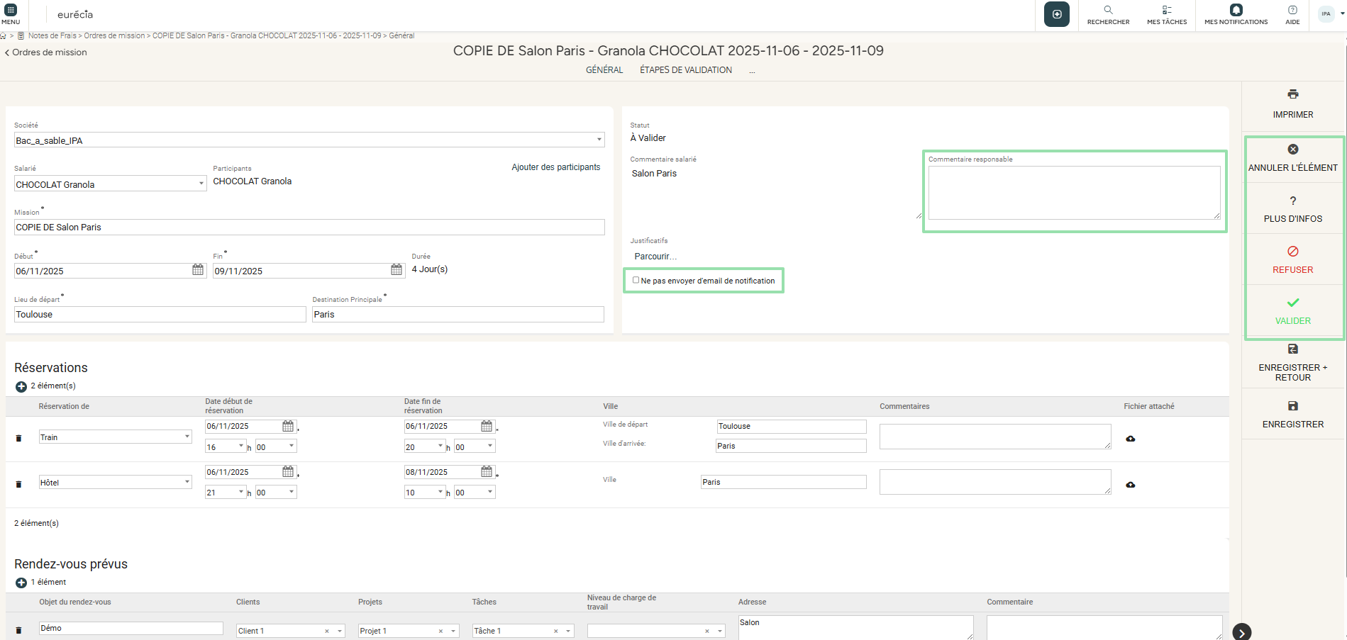 Dans Eurécia, il existe trois façons de valider ou refuser une demande d’ordre de mission 👇