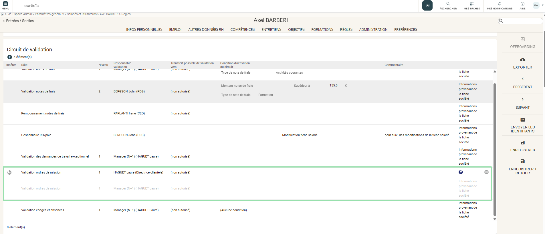 Paramétrer le circuit de validation des ordres de mission : fiche salarié