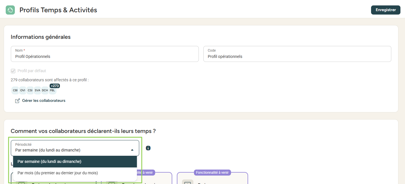 Espace admin > Temps & Activités > Profils de Temps & Activités.