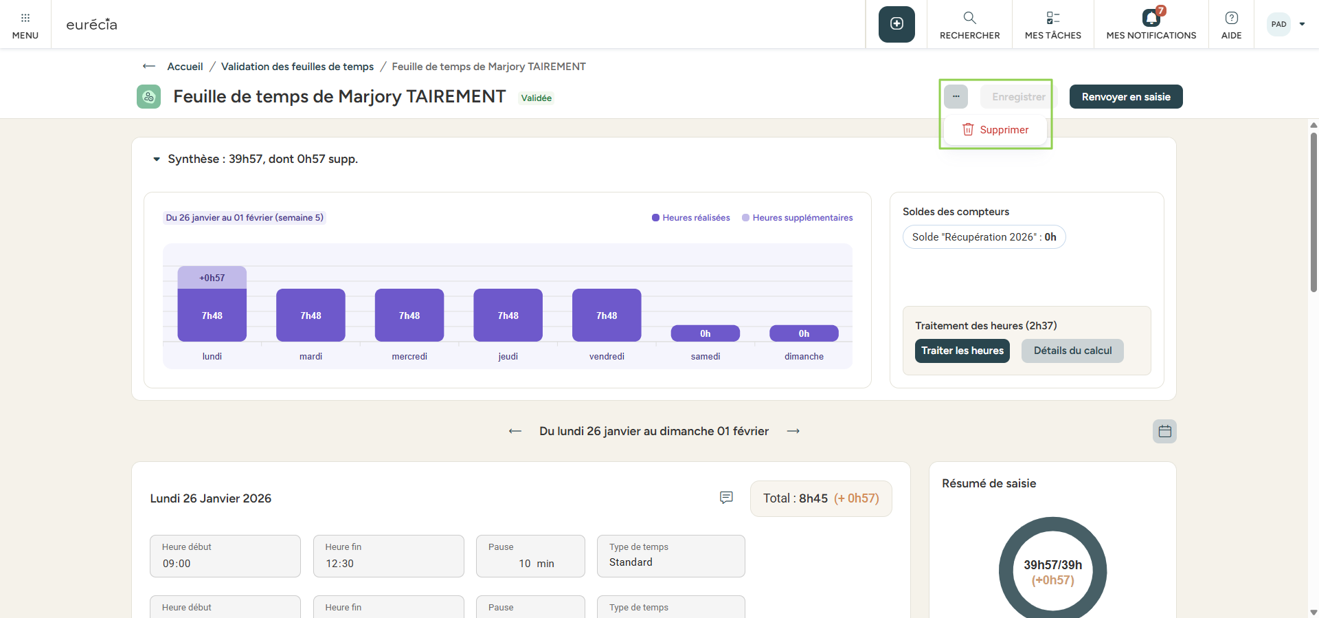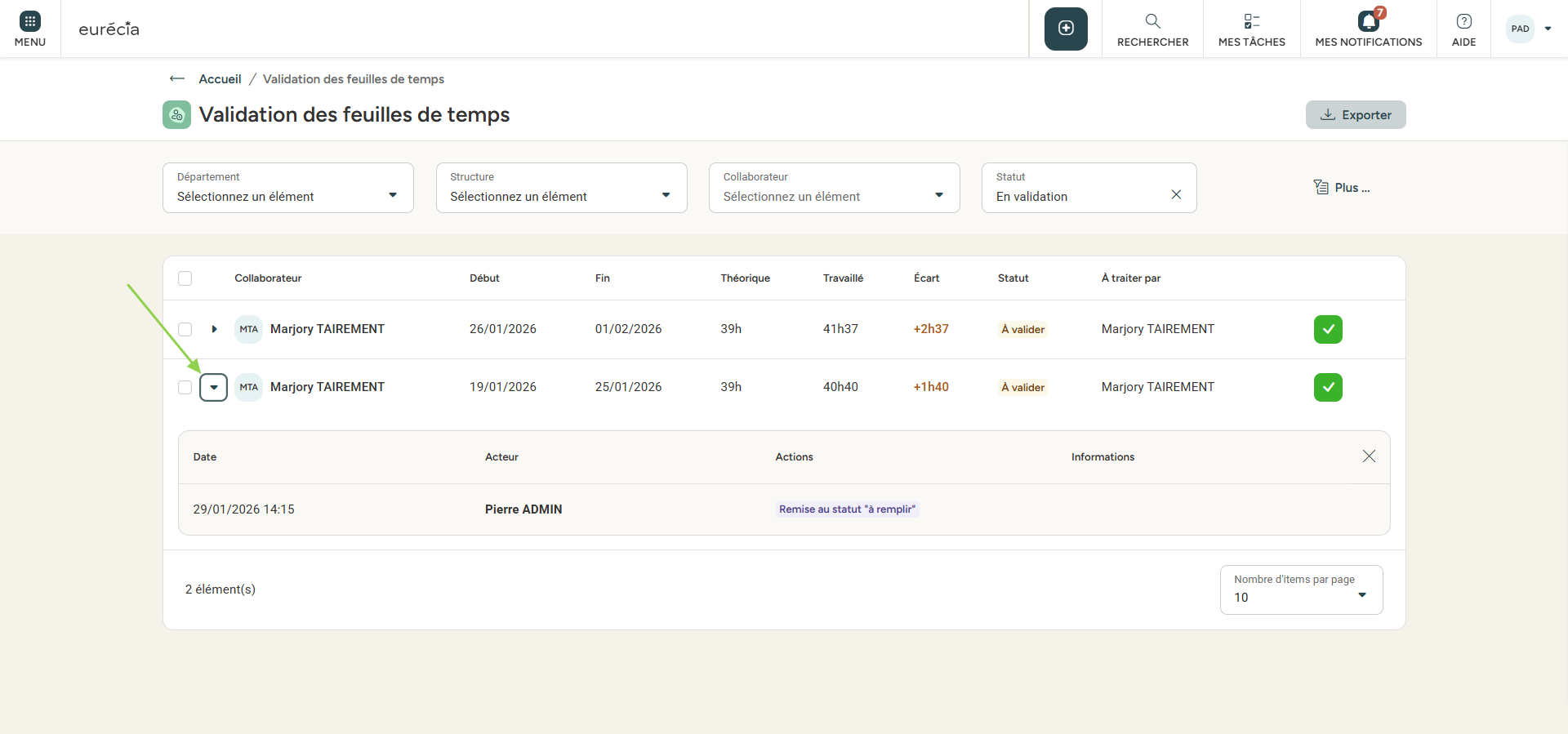 Cas 2 : depuis la liste des feuilles de temps.