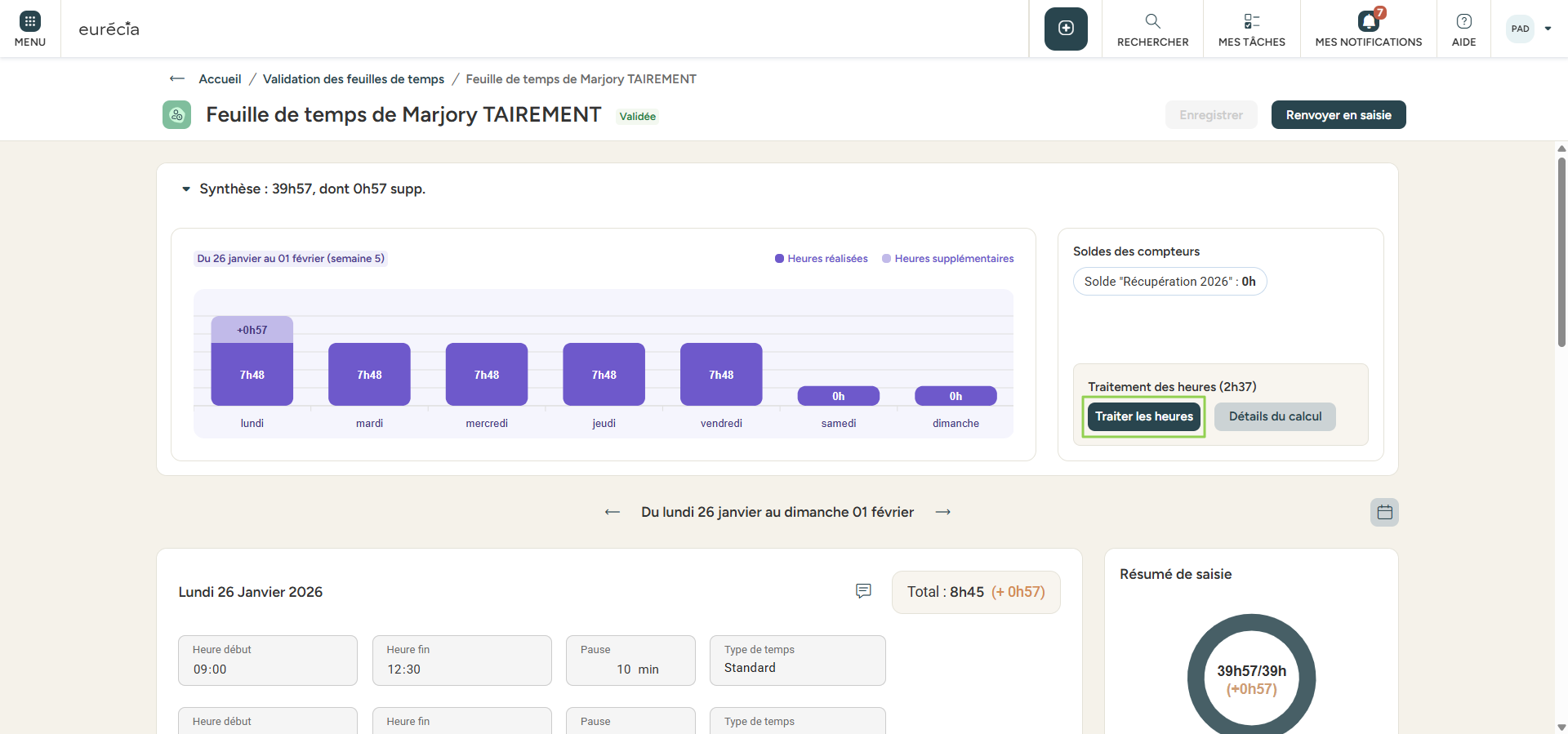 Valider et transférer les heures supplémentaires