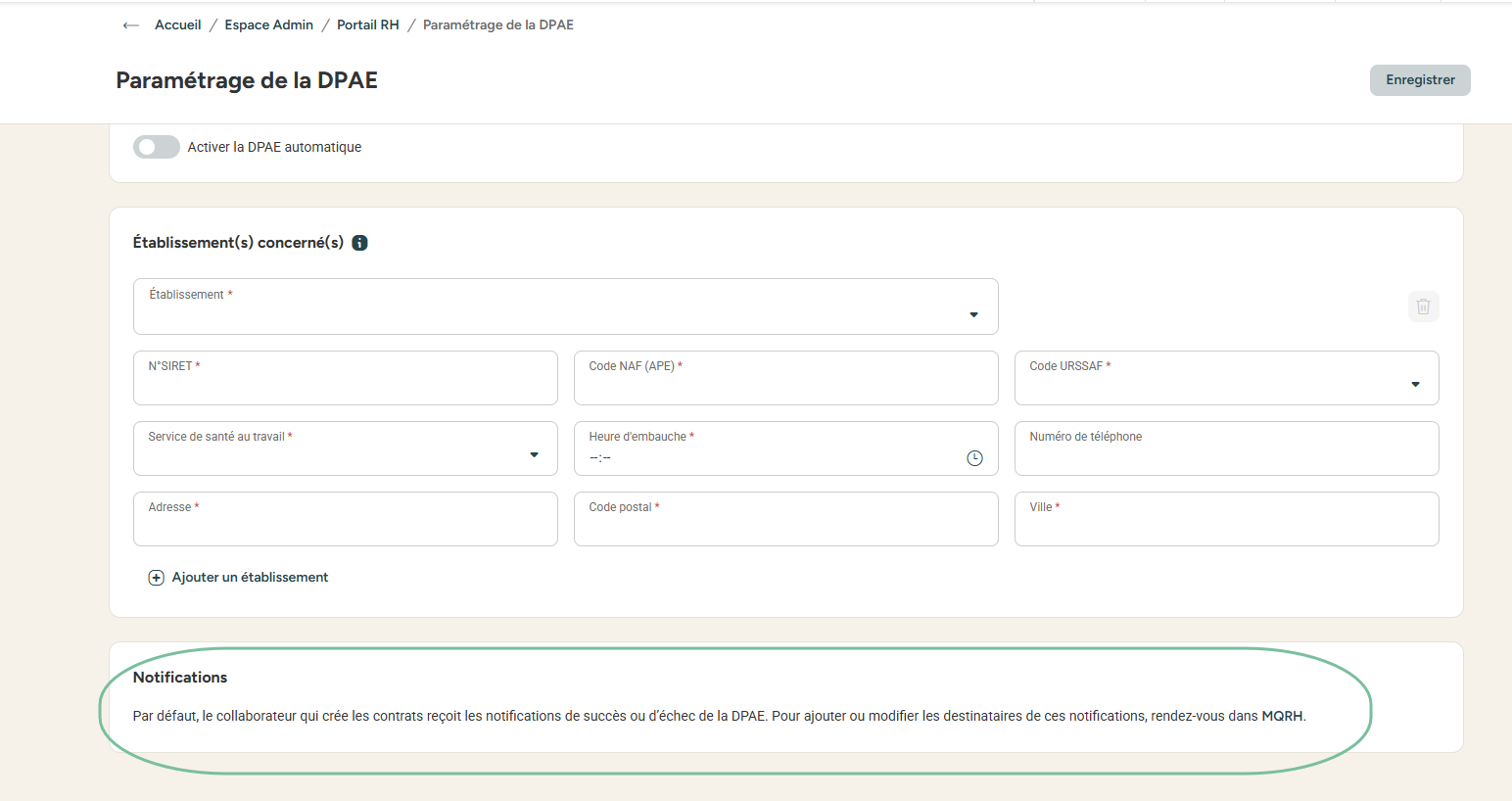 ⚠️ Attention : Les notifications pour la DPAE peuvent être paramétrées (activation/désactivation) dans Mon Quotidien RH.