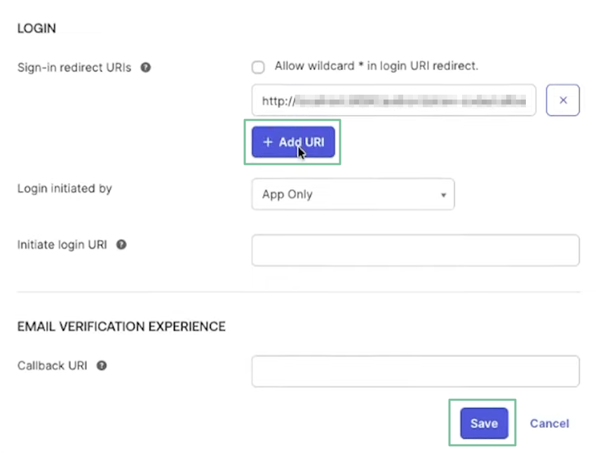 - Allez jusqu’à la section 'Login' et cliquez sur ‘Add URI’,