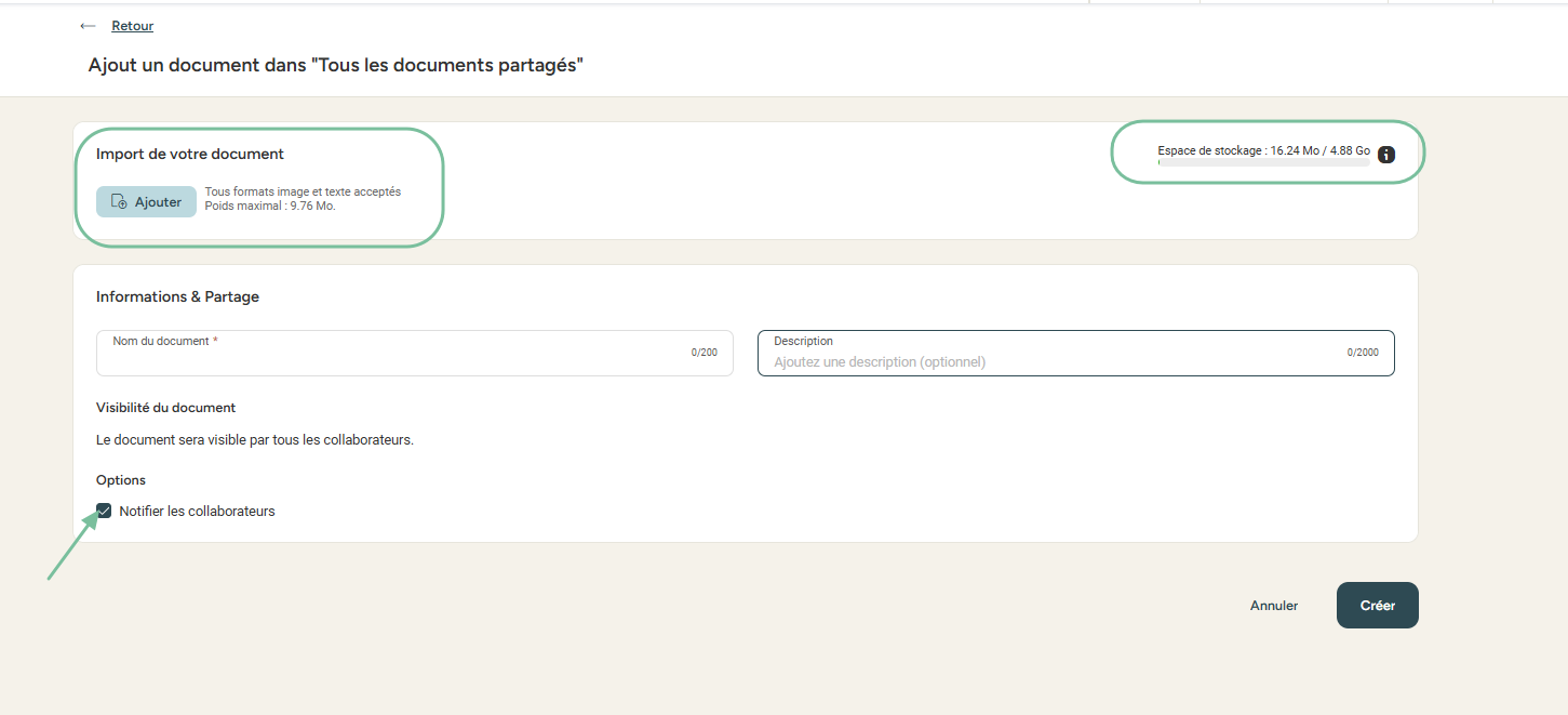 ⚠️ Attention : il sera visible par l’ensemble des collaborateurs.