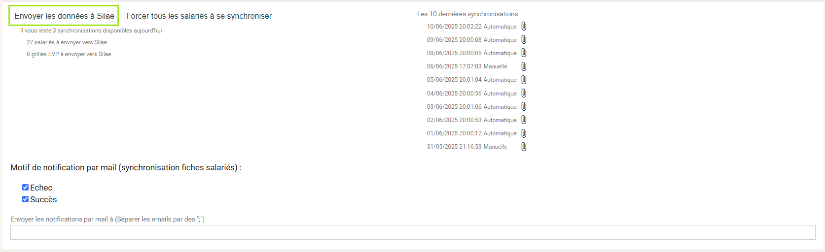 'Aucun élément à synchroniser avec Silae' :