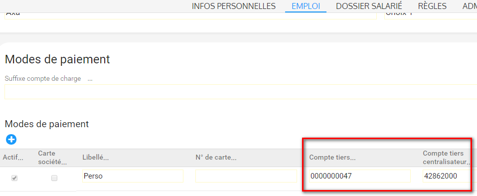 1. Il convient de renseigner le "compte tiers" dans la fiche de vos salariés.