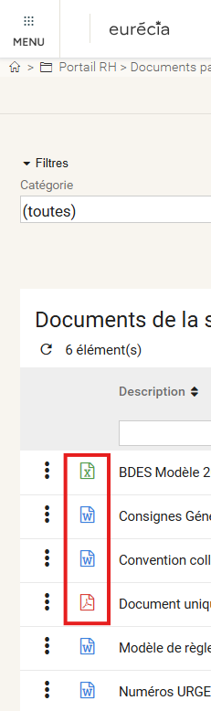 - Cliquez sur le pictogramme associé à chaque document,
