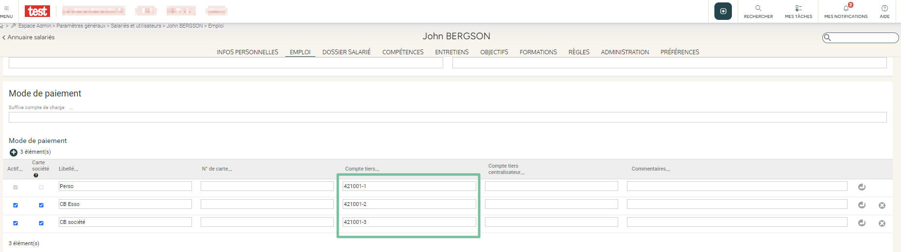 - Ouvrir la fiche du salarié concerné