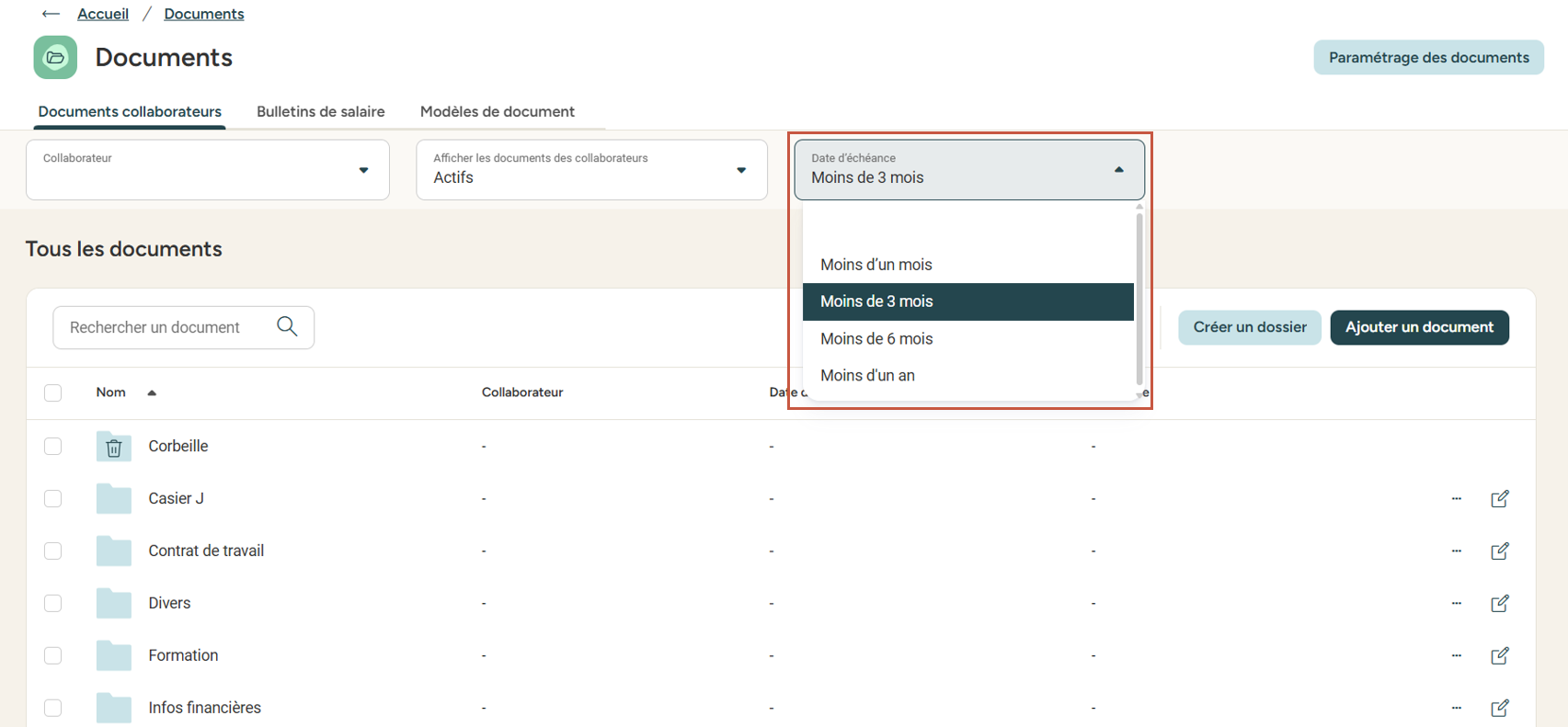Pour faciliter votre gestion RH, il est également possible de vérifier en deux clics quels sont les documents qui arriveront à échéance prochainement :