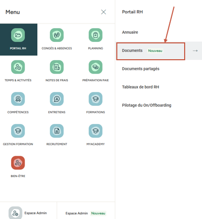 Accès : Menu Portail RH > Documents > Onglet "Documents collaborateurs"