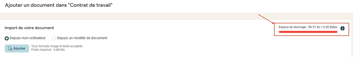 👉 Cette fenêtre vous permet de garder un œil sur votre espace de stockage et de ne pas être pris de court lorsque celui-ci devient trop restreint pour ajouter de nouveaux documents.