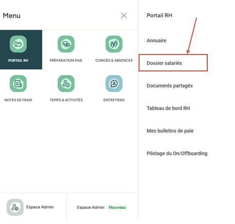 Accès : Portail RH > Dossier salarié