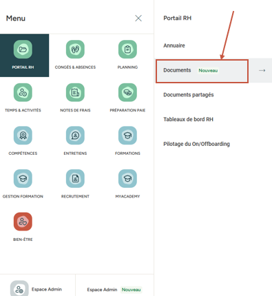 Accès : Portail RH > Documents