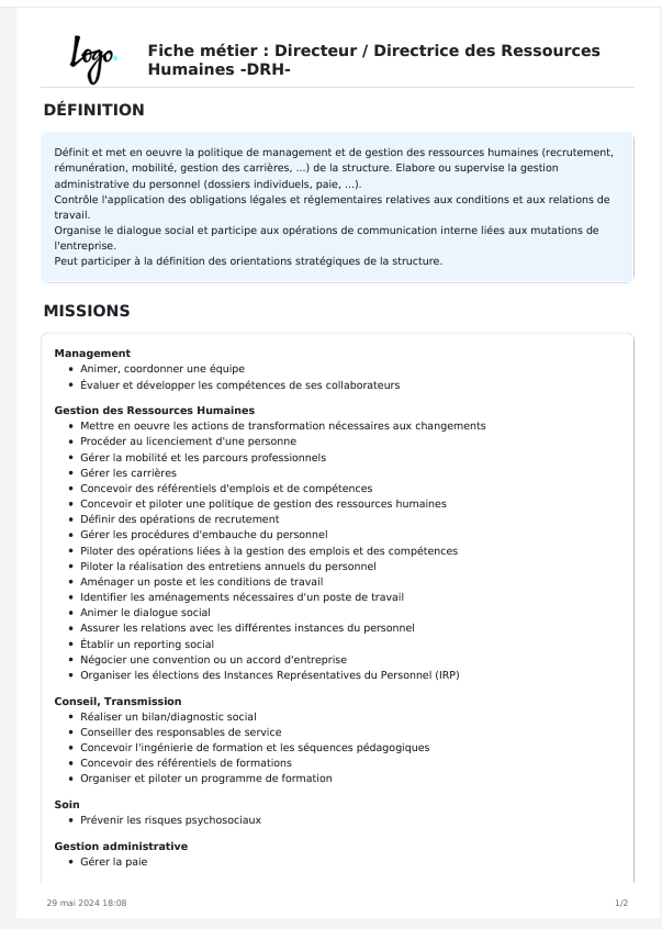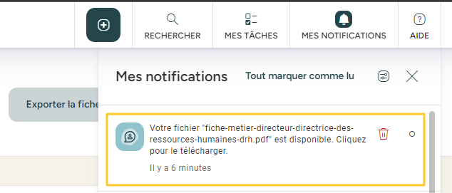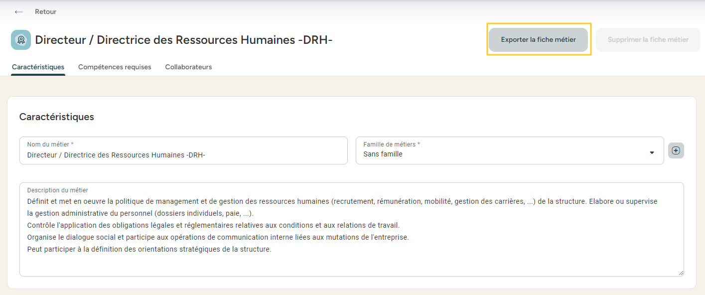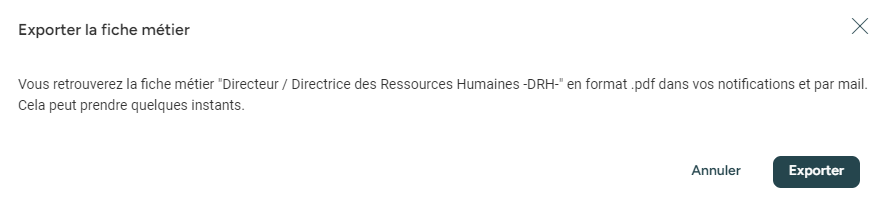 - Je clique sur le bouton 'Exporter la fiche métier' :